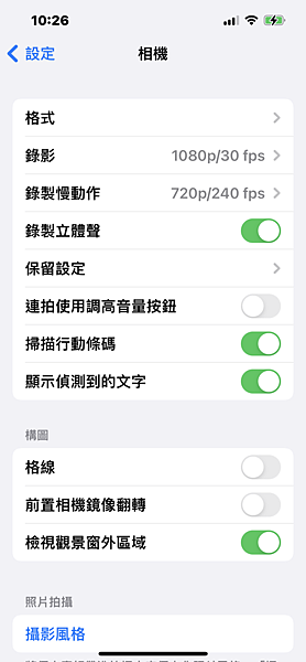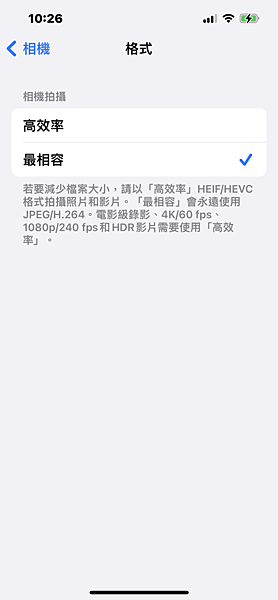 點選 iPhone 中的「設定」>>「相機」>>「格式」