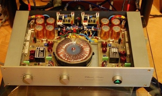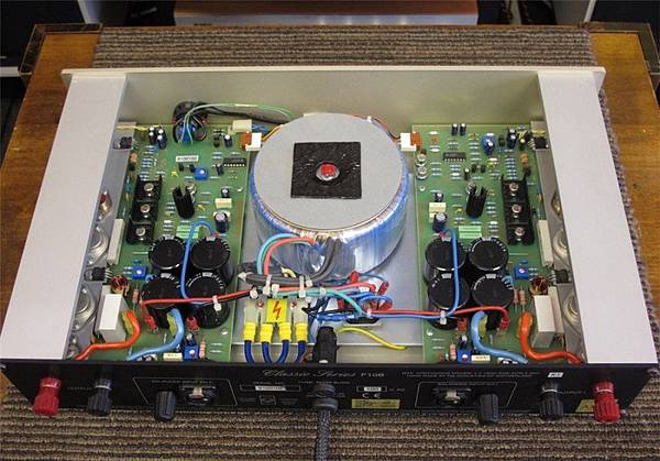 這個架構的產品機器內一個聲道只有一塊,機器只有2塊電路板並使用環牛。