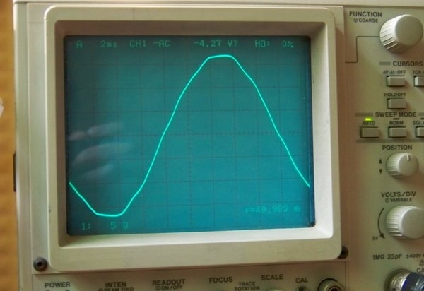 在沒有測試試驗前先看看220V/50HZ市電的波形和電壓情況。