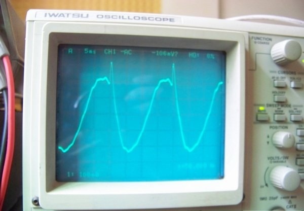 測得波形跟市電波形差不多,依然帶有大量諧波成份。