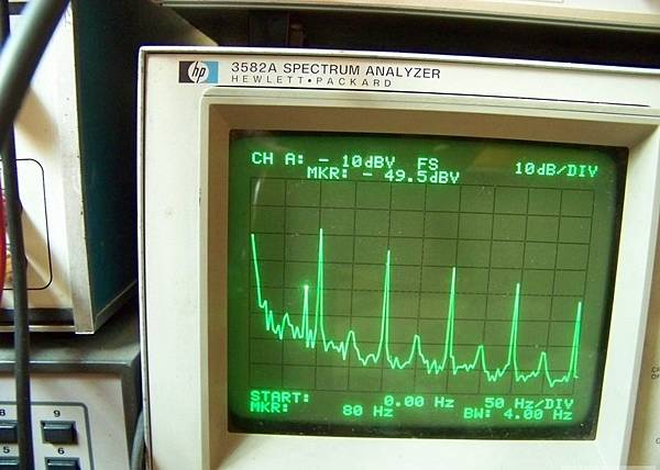 特意在我的功放中播放一個80HZ的低頻,在功放電源紋波中同樣測得有80HZ的頻率成份,