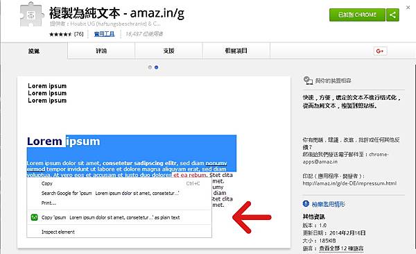 【擴充功能外掛】:複製為純文本
