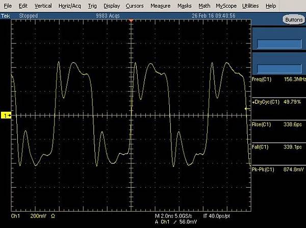 LVPECL電平,156.25MHZ參考時鐘在接收端測得的波形。