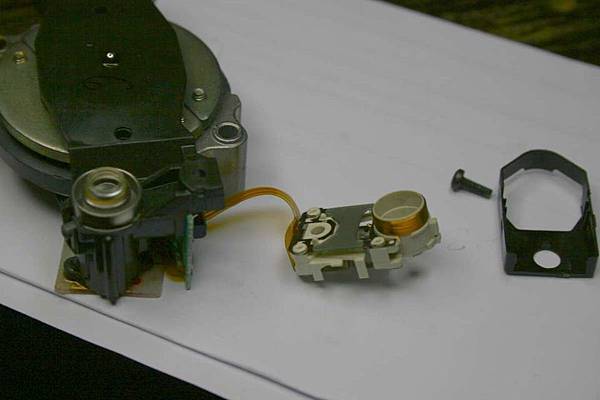 不用像圖片那樣。只要把雷射頭上殼拿掉,再用小六角起子就可拆除鏡頭,然後清潔內部鏡片