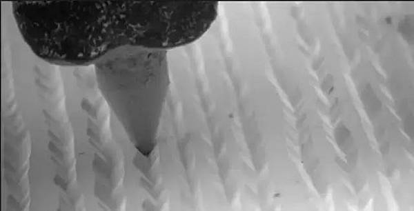 下圖是圓形針尖跟橢圓形針尖的示意圖,
