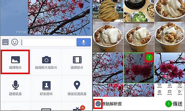 step3. 點選照片右上角小圈圈,左下角出現「原始解析度」記得打勾→傳送