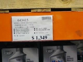COSTCO Mobile1 0W-40 6瓶1349元,平均224.83元。