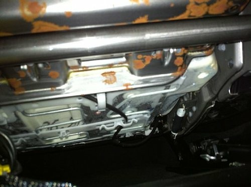 從外觀來看,座椅底下應該是鍍鋅鋼板,一般來說這種鍍鋅,只要前處理有做好,鍍層厚度也夠,存放位置乾燥,應該是不會生鏽才對,應該是偷工減料無誤,拆開出風口裡面的車架,一般而言焊接過後都會做上漆處理,不過很明顯那根樑是沒處理過的,不過仔細看看國產車,其實那邊沒處理的也不少,十年前鏽長那樣,十年後鏽還是那樣的可能性很高,因為汽車本身內部有空調,所以環境濕度控制還不錯,實際說起來只有爽度問題,沒有安全性的問題...