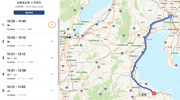 預計要從 名古屋 ---> 伊勢市