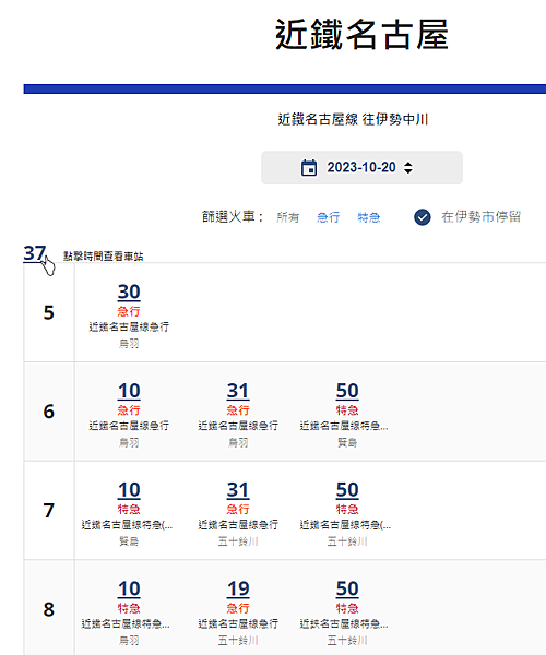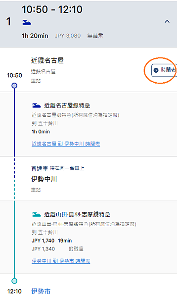 輸入從 "近鐵名古屋" 到 "伊勢市"